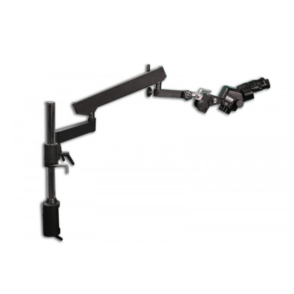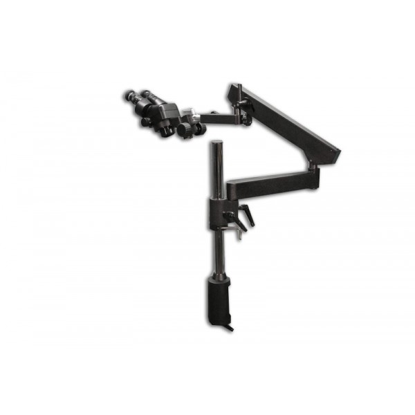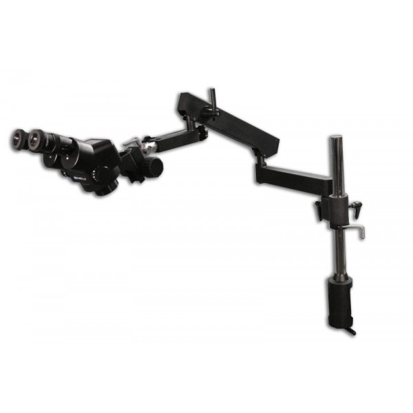 The Meiji Techno FA-3B Articulated Arm Stand is an industrial type articulating black arm stand with 16mm diameter mounting pin for ready for a FS & FSC focus holder that is inclinable 180° and rotated 360° (optional) or a OS-SP20MM – 20mm drop down post (optional) for F focus block. Great for examining industrial parts and for inspection of larger or awkward shaped item, this articulating arm stand provides ultimate versatility without sacrificing stability. This articulated stand weighs about 20 lbs. and comes with a 15.25”, 387.35mm High Stanless Steel Pillar and 37", 939mm Reaching-out length.
