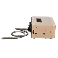 The Meiji light source provides up to 150 watts of radiometric output from a 21 volt tungsten halgen lamp. The adjustable voltage supply governs output from 0 to 21 VAC. This model model features filter holder, ergonomic handle, Bezel adapter with locking design to keep goosenecks steady, a digital intensity control from 0-100%, and a seperate on/off switch to maintain intensity settings when the unit is shut down.