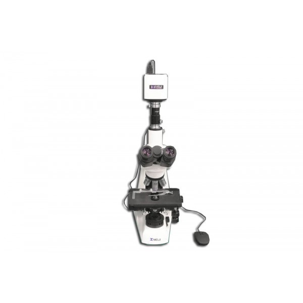 MT5300H-HD1500MET/0.3Trinocular Brightfield Biological Halogen Laboratory Series is one of our most rugged fully equipped microscope systems from Japan . A modular design facilitates attachment of a variety of accessories such as CMOS/CCD HDMI video cameras, and all types of 35mm Digital SLR Cameras in the market today can be attached easily with the proper adapter set. To meet the demands of researchers and clinical laboratory specialists.  When the 80/20 beamsplitter of the trinocular head is engaged for photo work, 80% of the image is directed to the phototube and 20% to the eyetube. The MT5300H-HD Series microscopes feature a new computer engineered rigid frame that incorporates low positioned coaxial coarse/fine focus controls and ergonomic stage design for maximum efficiency and comfort while providing and extremely stable platform. The cast aluminum alloy metal stand has a chemical resistant finish and is the most rugged, durable finish in the market today. Equipped tension adjustment controls and a built in stage stop lever to protect the specimen and objectives from accidental damage during use. The MT5300H Series offers an outstanding range of features and optical performance with an emphasis on all newly engineered high performance U. Plan optics based on Meiji Techno’s ICOS™ Optical System (Infinity Corrected Optical System F=200mm) The new optics, provide exceptionally bright, crisp images with good color rendition and superior flat fields of view.