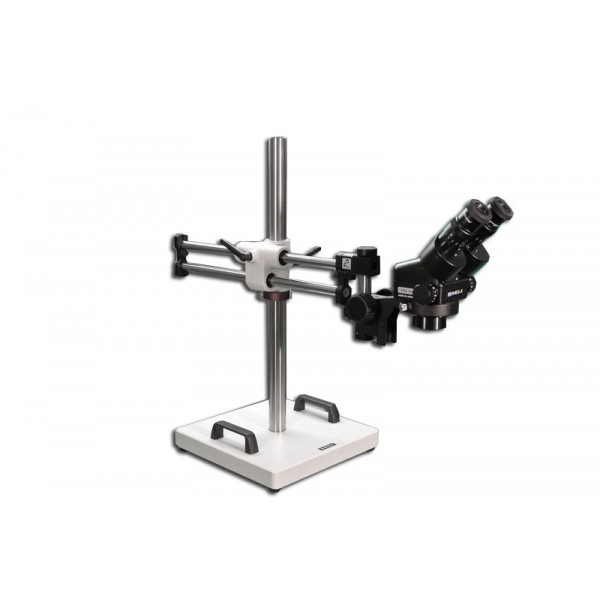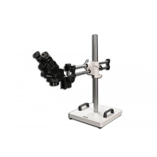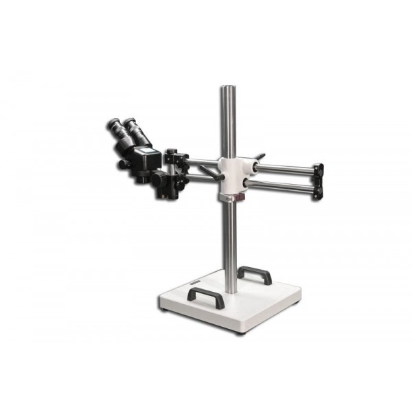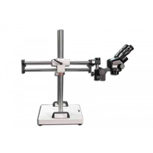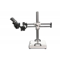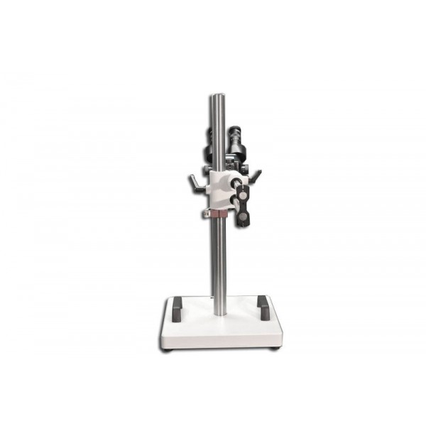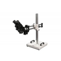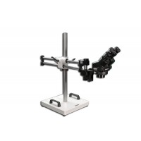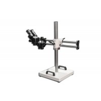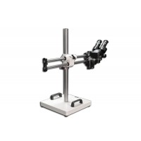 The BAS-2 Heavy Duty Boom Stand is Meiji Techno America’s most popular Ergonomic boom stand with a pillar, a cross-arm and a 20mm drop down mounting post that accepts industry standard focus blocks with a 20mm mounting hole. The BAS-2 is equipped with a 635mm (25”) vertical pole and a 457.2mm (18”) horizontal pole. The BAS-2 offers minimal space requirement and greatest possible amount stability for EM stereo system up to 30 lbs. There is no loss of stability even at its furthest travel. The BAS-2 can swing out of the way easily, clearing the workstation for other tasks. The horizontal arm can be moved freely and smoothly left to right or can be securely locked into position with our spring loaded handle knobs. The vertical column is used to compensate for taller specimen heights to accommodate the working distances of different microscope bodies. Anti-rotation is stabilized by a locking pin on the vertical post. The BAS-2 Heavy Duty Boom stand provides a comfortable amount of space for large Solar panels to large semiconductor and electrical components. The BAS-2 is supported by a 80.00 lbs base. This boom stand is an affordable; low cost with high quality safety features makes this boom stand unmatched value in its class. This stand has ample height and long reach to work on an inspect small to large parts under the microscope. Ergonomic flexibility, chemical resistant paint finish and corrosion resistant stainless steel columns make this boom stand an excellent choice in labs and production facilities.