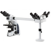 The MT-60/MT-61 can be extended with a unique multiheaded system for in total of two, three or nine heads, allowing simultaneous observation of specimens. The central attachment is equipped with a joystick to move a green and red laser pointer across the entire field of view of all heads. Configurations with 30 degrees inclined tubes and plan 4x, 10x, S40x, S100x oil immersion infinity corrected IOS objectives. All heads are equipped with extended wide field plan EWF 10x/22mm eyepieces.