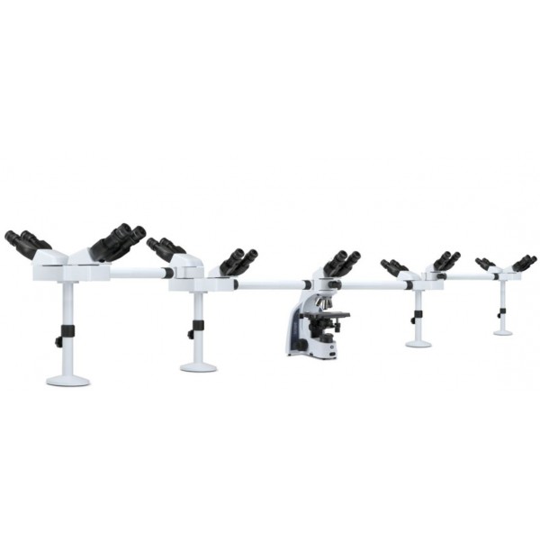 The MT-60/MT-61 can be extended with a unique multiheaded system for in total of two, three or nine heads, allowing simultaneous observation of specimens. The central attachment is equipped with a joystick to move a green and red laser pointer across the entire field of view of all heads. Configurations with 30 degrees inclined tubes and plan 4x, 10x, S40x, S100x oil immersion infinity corrected IOS objectives. All heads are equipped with extended wide field plan EWF 10x/22mm eyepieces.