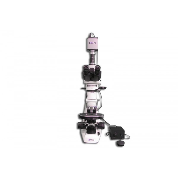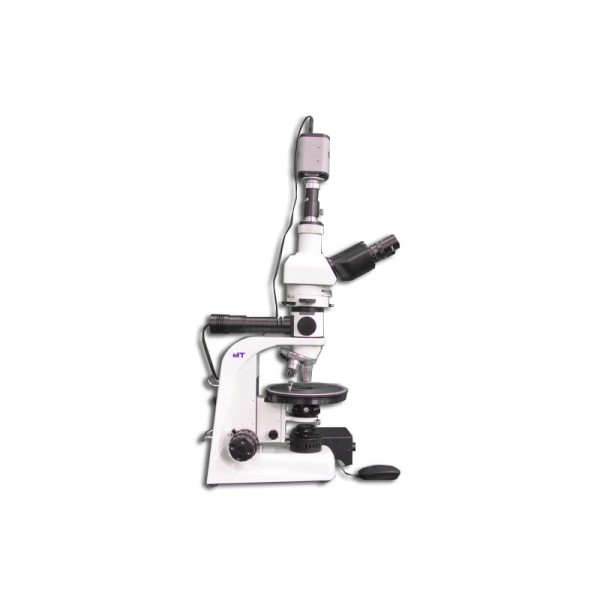 • MT9930L: Trinocular MT9930L Series LED Incident and LED Transmitted Polarizing Microscope is an investigative tool for isotropic and anistropic materials. Focusable Bertrand lens, Rotatable Analyzer with 180° graduations. Newly designed Strain free Abbe Condenser 1.25 N.A. with a swing out top lens and built in iris in a dovetail mount is easy to change and operates and tracks very smoothly and predictably facilitating accurate iris control with improved usability. Newly improved ∞ Infinity Corrected Objectives ICOS Optical System. Ceramic coated, 175mm diameter, ball bearing, circular rotating stage graduated 360°, with 1°increments and vernier reading to 0.1°. Polarizer in a swing in-out click/clamp mount, fully rotatable 360° with click stop at 0°and 90°.