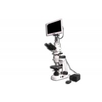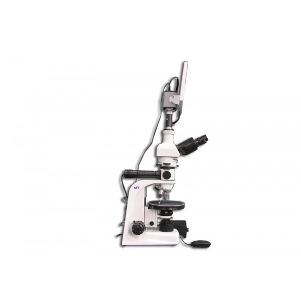 • MT9930: Trinocular MT9930 Polarizing Series with Incident and Transmitted 6V 30W Halogen Polarizing Microscope is an investigative tool for isotropic and anistropic materials. Focusable Bertrand lens, Rotatable Analyzer with 180° graduations. Newly designed Strain free Abbe Condenser 1.25 N.A. with a swing out top lens and built in iris in a dovetail mount is easy to change and operates and tracks very smoothly and predictably facilitating accurate iris control with improved usability. Newly improved ∞ Infinity Corrected Objectives ICOS Optical System. Ceramic coated, 175mm diameter, ball bearing, circular rotating stage graduated 360°, with 1°increments and vernier reading to 0.1°. Polarizer in a swing in-out click/clamp mount, fully rotatable 360° with click stop at 0°and 90°.
