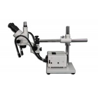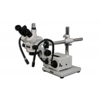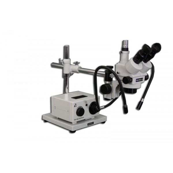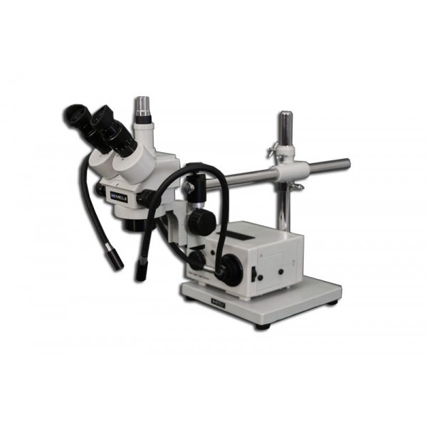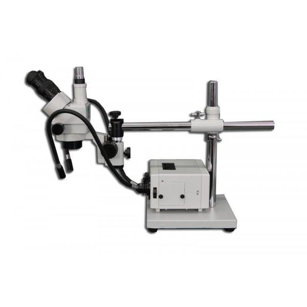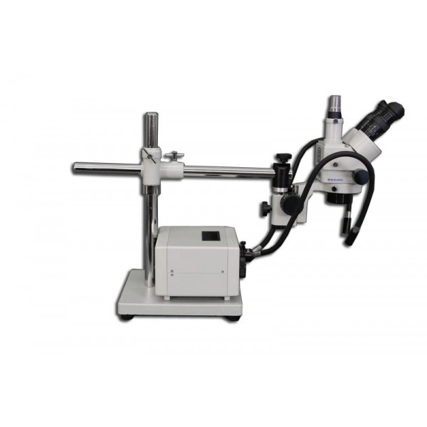 MDM-5TR Trinocular Zoom Stereo Microscope with Fiber Optic Dual Arm Light on a Boom Stand with 150mm Working Distance