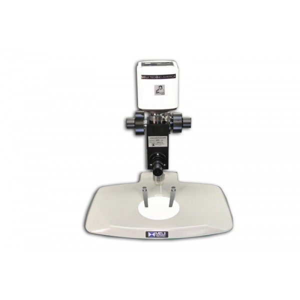 The VM-2V in this configuration is a video microscope with a 0.5X magnification factor and has a vertical C-mount. The objective lens included is a MA871 Plan Achromat Epi 10X metallurgical objective lens. The pole stand base, VM-PK, is a wide ergonomic pole stand that includes a coarse and fine focus block (VM-FB) for the VM and VM-LED Video Microscopes. It has the base dimension of 330mm (12.99”) wide x 280mm (11”) deep with VM-FB coarse and fine focus block. It is also supplied with one 94.5mm diameter reversible black and white stage plate and two stainless steel stage clips and is backed by Meiji Techno’s Limited Lifetime Warranty.All non LED VM Series require one external light source and light guide FT190/115 or FL150/115 and FL150/95 light guide.