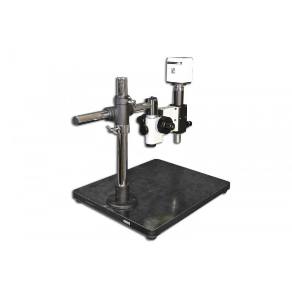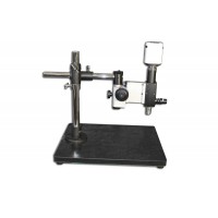 Universal Pole type wide surface laminate Stand with 350mm x 410mm x 30mm base, crossarm and mounting post mounted with focus block for VM Series, (VM-FB) fits 20mm diameter pole with rotatable Fiber Optic Tray, best for large specimens