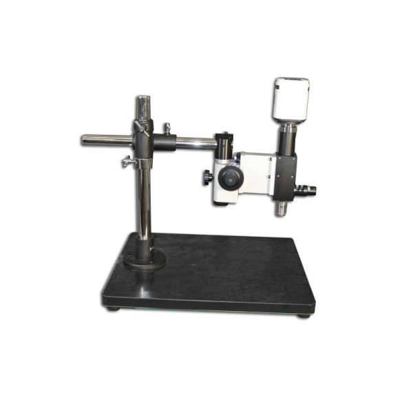 • VM-MU: Universal Pole type wide surface laminate Stand with 350mm x 410mm x 30mm base, crossarm and mounting post mounted with focus block for VM Series, (VM-FB) fits 20mm diameter pole with rotatable Fiber Optic Tray, best for large specimens