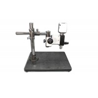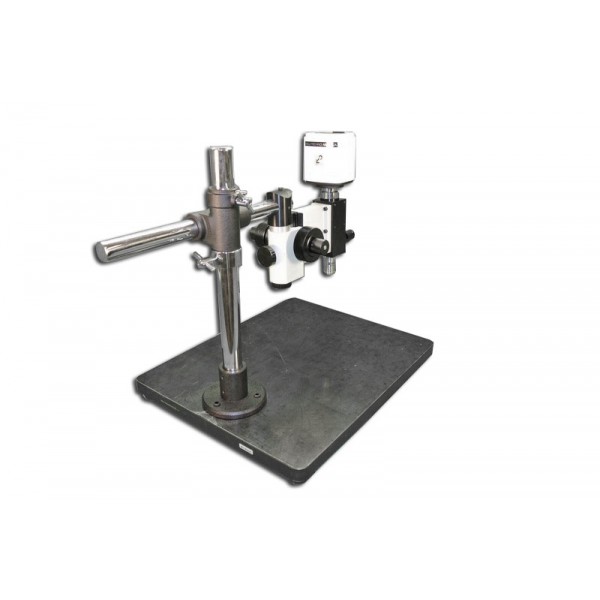Universal Pole type wide surface laminate Stand with 350mm x 410mm x 30mm base, crossarm and mounting post mounted with focus block for VM Series, (VM-FB) fits 20mm diameter pole with rotatable Fiber Optic Tray, best for large specimens
