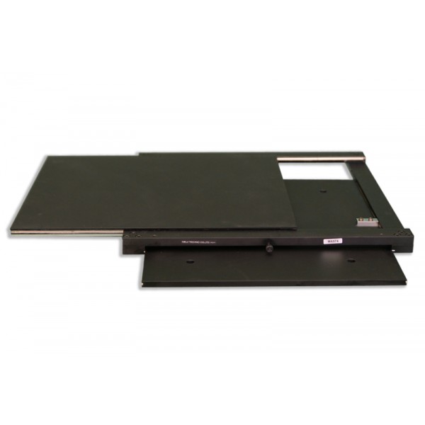 Large 395mm x 395mm (15.5" x 15.5") roller-bearing stage for wide surface or boom stands. With 350mm x 270mm x-y travel, black anodized surface, and x-y lock screws. Used on our SMD Series Stations.