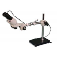 BM and BMK LED Series Long Arm Stereo Microscopes are high quality industrial and healthcare quality stereo microscopes mounted on a 255mm horizontal inclinable arm supported by a 300mm vertical post and heavy cast base. The integral illuminators on BM Models feature a three lens condenser system fitted into the binocular body and an AC auto voltage sensing power supply. BMK Model illuminators are mounted on the side with a ball swivel. The paired interchangeable parfocal objectives are mounted on a dovetail slide.